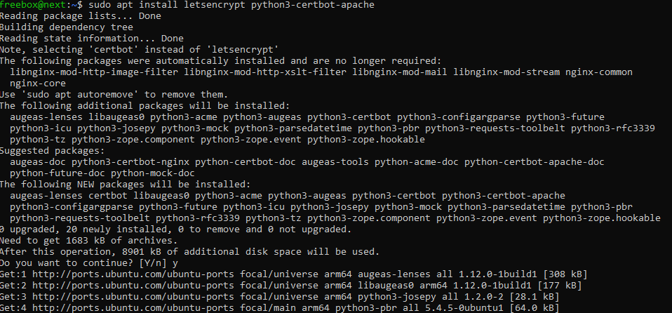 sudo apt install letsencrypt python3-certbot-apache